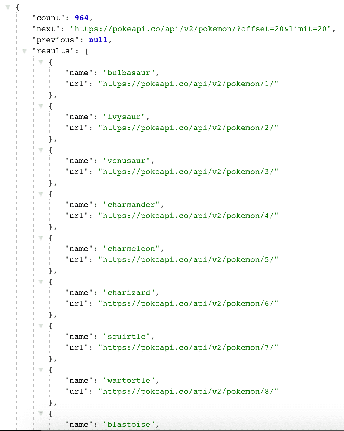 You see that the data.results will give us the list of pokemon and it’s paginated as well, so that suits perfectly for our functionality, because everytime we go to the end of the scroll we will ask for the next page.