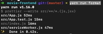 $ yarn add --dev --exact prettierWith prettier added lets add a custom script to check all our files with prettier, lets modify our package.json